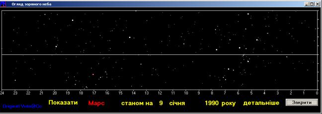 компонент дозволило наочно зобразити розміщення планет на фоні зоряного неба.