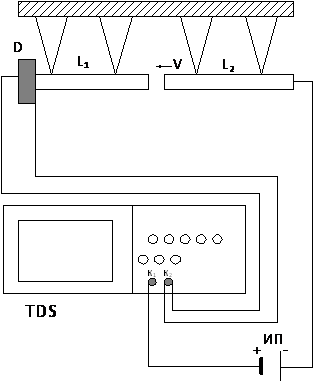пьезодатчик D, сигнал с которого поступает на вход K2 осциллографа.