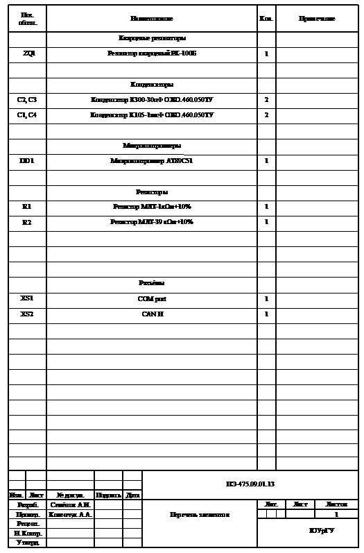 Рис. 4.3 - Схема подключения кварцевого резонатора