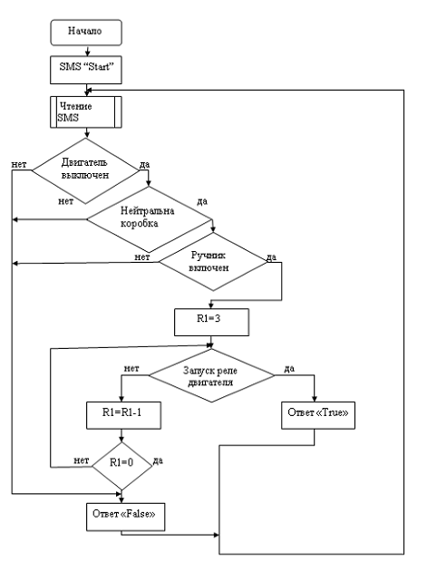 запуск двигателя с помощью отправки SMS сообщения, отвечает требованиям технического