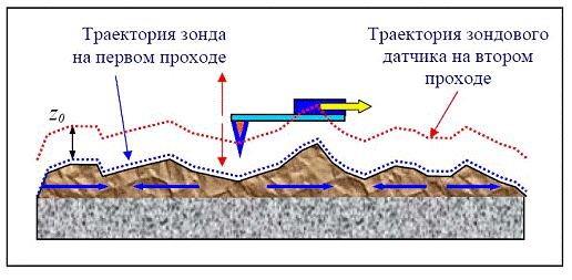 по двухпроходной методике. На первом проходе определяется рельеф поверхности по