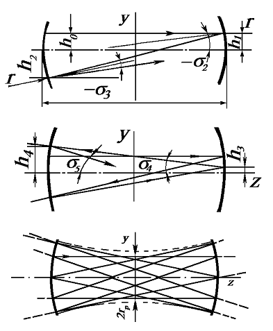 Рисунок 32 - Ход лучей в полуконфокальном резонаторе