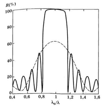 После чего был произведен расчет пропускания интерференционного зеркала,