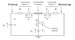 конденсатором, і може бути охарактеризований тунельним опором Rt i ємнiстю C.