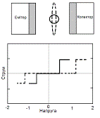 перезаряджатися пiсля тунелювання електрона. Якщо зовнiшня напруга менша, нiж