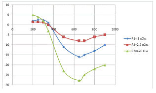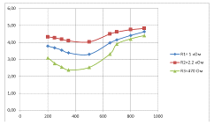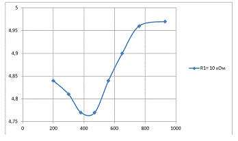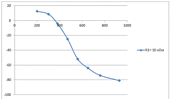 Повторили эксперимент при R1= 10 кОм, R2=10