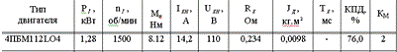 Таблица 1. Характеристики электродвигателя 4ПБМ112LO4