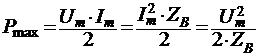 величина мощности Рmax выделяется в нагрузке в согласованном режиме; т.е., при ZH = ZB;