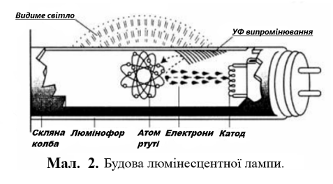 видиме спектр. Світлова віддача люмінесцентних світильників доходить до 80 лм /