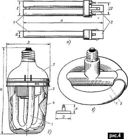4, а), де 1-розрядна трубка, 2 - спеціальний цоколь G23 з вмонтованим всередині