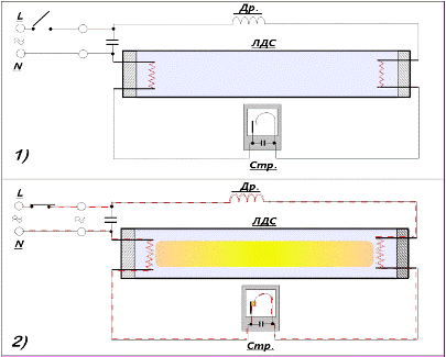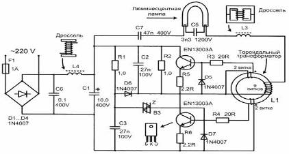Підключення люмінесцентних ламп за допомогою електронного пускача