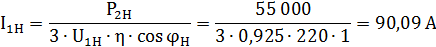 Определим номинальный ток 3х фазного асинхронного двигателя.