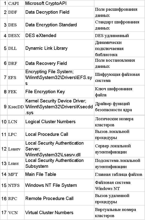расшифровать ни одного FEK в DDF или DRF, пользователь не получит FEK файла, и EFS запретит доступ к файлу приложению,