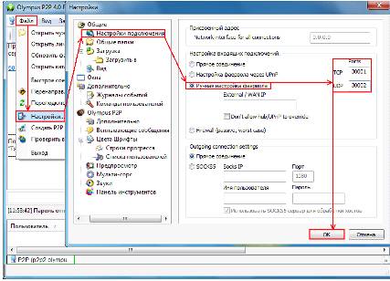 переадресацию портов. Рассмотрим эту процедуру на примере P2P-клиента.