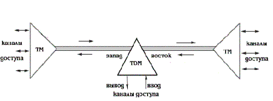 линейная цепь» уровня STM-4, состоящая из 4-х мультиплексоров. На схеме