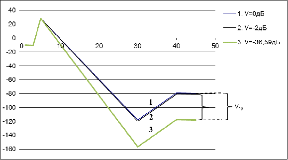 малых процентов времени. Построена диаграмма уровней сигналов на заданном пролете,