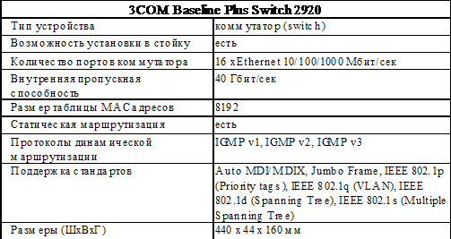 Таблица Б.3. 3COM Baseline Plus Switch 2920
