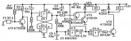 напряжение на коллекторе VT1 расценивалось логическим элементом D1.2 как