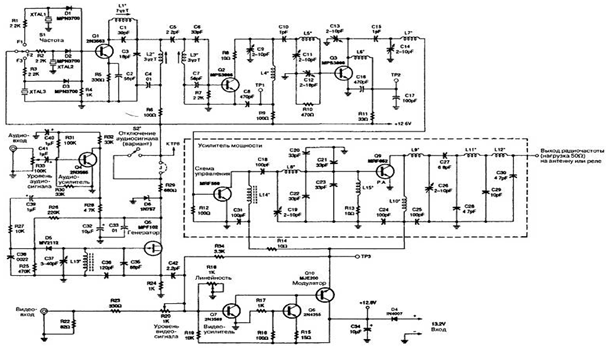 сопровождения и формирует на своем выходе радиосигнал вещательного телевидения.