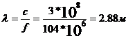 узкий, поэтому можно произвести расчеты на средней частоте 104МГц.