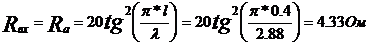 какl/l=0,4 / 2,88=0.14l<l /4, 0,4<0,75 то действующая высота антенны определится