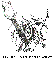 обрезают копытными щипцами, клещами, обрубают долотом, стамеской. Затем подошвенную