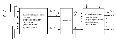 предыдущего состояния автомата, которое фиксируется элементами памяти. В