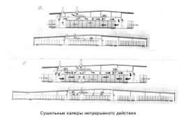 Камерное сушило загружается и разгружается целиком, сушило же непрерывного