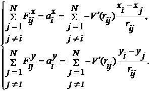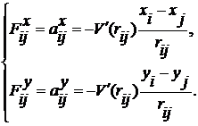 axn[i]+=(-V)*(x[i]-x[j])/r[i];
