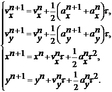 }[i]=0.5*(axn[i]+ax[i])*t;[i]=0.5*(ayn[i]+ay[i])*t;[i]+=vx[i]*t+0.5*ax[i]*t*t;[i]+=vy[i]*t+0.5*ay[i]*t*t;[i]=axn[i];[i]=ayn[i];