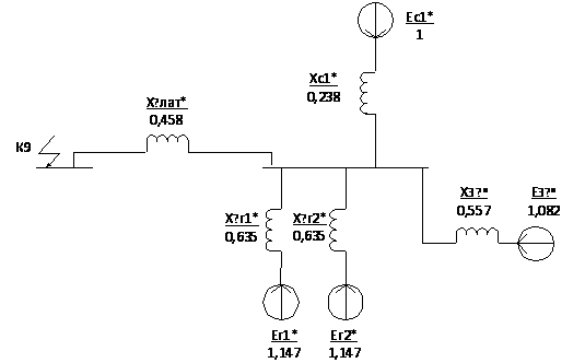 Используя схему замещения для трехфазного КЗ на