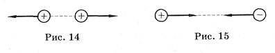 противоположно направлены и действуют вдоль прямой, соединяющей эти точки: