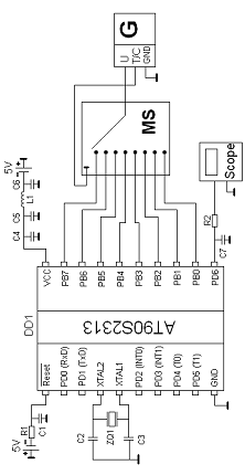 написано с помощью команд контроллера AT90S2313.