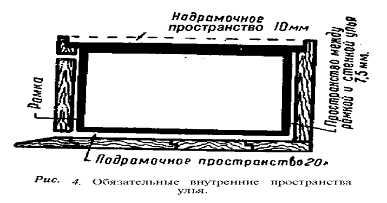 проходы для пчел между рамками (улочками) -12-'12,5 миллиметра. Расстояние