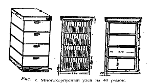 многокорпусного улья и три корпуса с вентиляционной сеткой стандартного