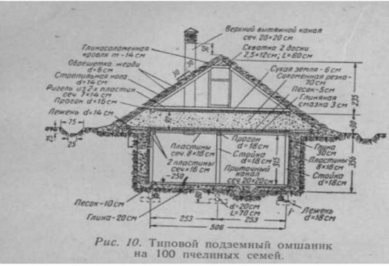 кровли, оставляя только тамбур. Подземные омшаники строят в земле, и