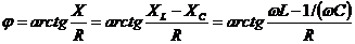 Знак угла φ зависит от соотношения между индуктивным и емкостным