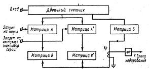поступают на блок кодирования с матричных шифраторов при совпадении импульсов,
