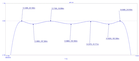 и ФНЧ, на рисунке 12 и 13 - оценка полосы подавления и пропускания соответственно.