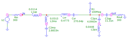 параметры полученного фильтра соответствуют ТЗ. Выполним полученный RLC ПФ на