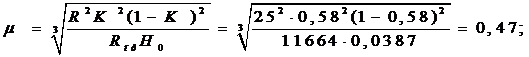 определяется относительный просвет h0 =H/H0 где величина H0 находится