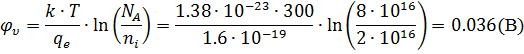 Пороговое напряжение равно: