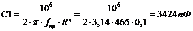 Рассчитываем ёмкость разделительного конденсатора С1 и С2