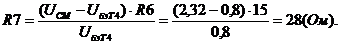 Выберем падение на резисторе R7=0,61 (B), тогда