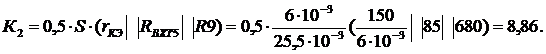 Рассчитаем коэффициент усиления выходного каскада: