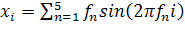 пяти гармоник, частоты которых расположены в центре полосы пропускания, на