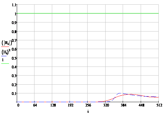 график квадрата передаточной функции фильтра - как видно они почти совпадают.