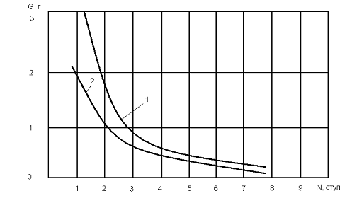 отложений на одну лопатку (1 - выпуклая сторона лопатки, 2 - вогнутая сторона