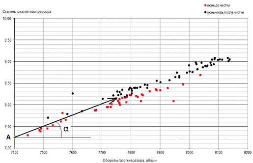 Определение степени загрязнения проточной части осевого компрессора газоперекачивающего агрегата с однокаскадными двигателем в условиях работающей станции