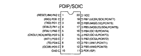 скидання. Вхід скидання має альтернативні функції лінії РА2 і лінії dW.